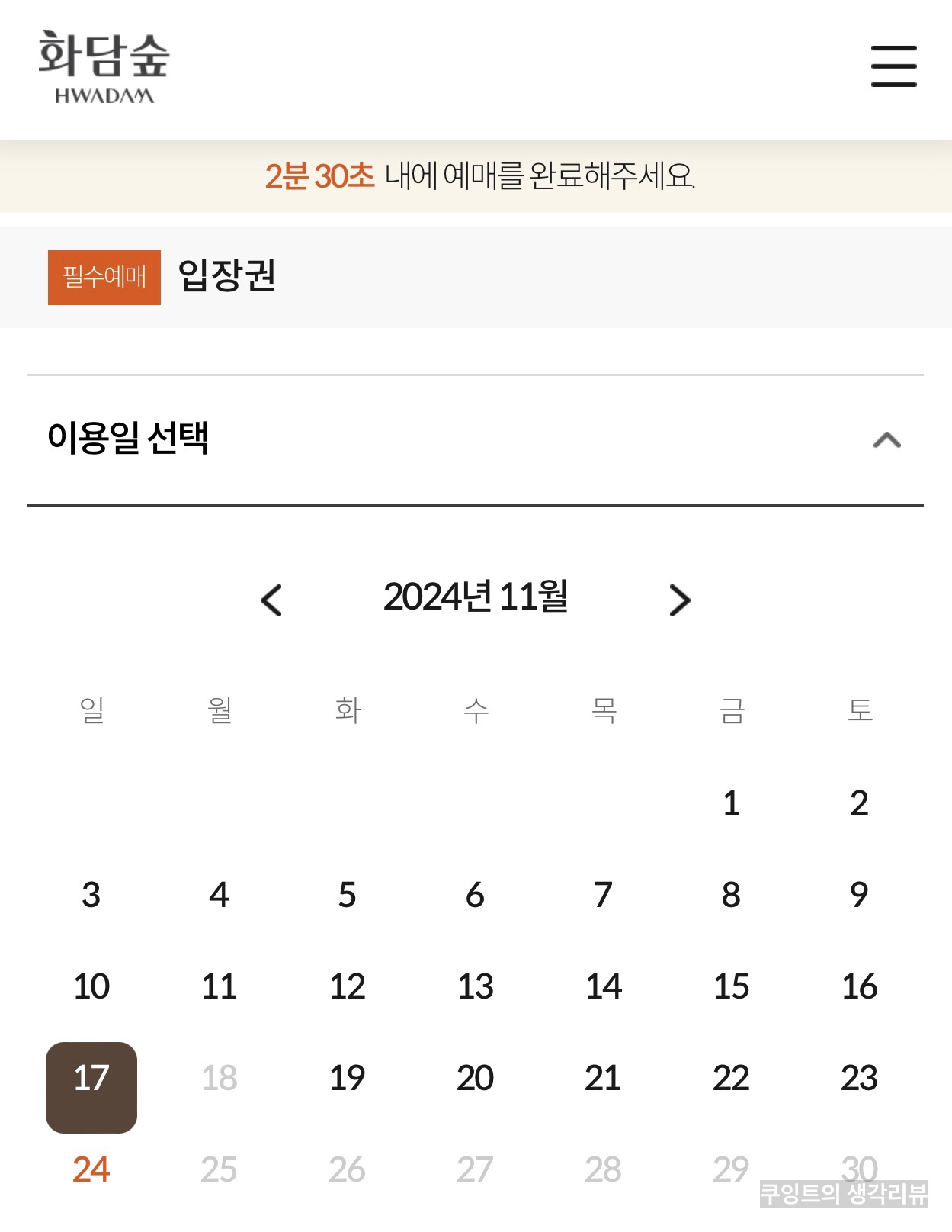 하지만 분명 취소표는 나오기 때문에 가을 단풍 행사 마지막 전까지 수시로 들어가셔서 티켓 재고를 확인하시면 분명 하나쯤은 나올 거예요! (저도 그렇게 성공해 다녀왔답니다.)