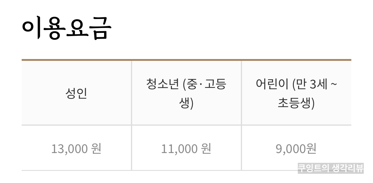 성인 13,000원 / 청소년 11,000원 / 어린이 9,000원